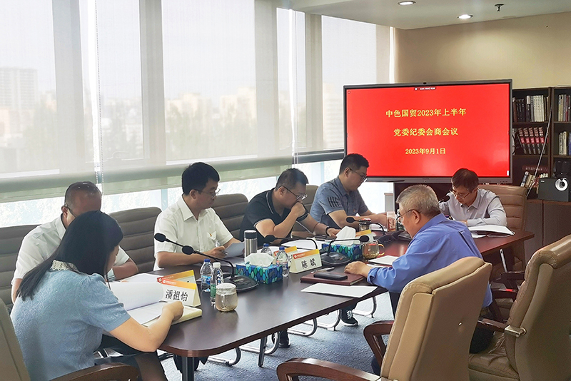 9月1日,中色国贸党委、纪委召开2023年全面从严治党沟通会商会议,深入贯彻落实党的二十大和二十届中央纪委二次全会精神,落实集团公司党风廉政建设和反腐败工作部署,推动党委主体责任和纪委监督责任贯通联动、一体落实,不断深化全面从严治党治企。中色国贸党委书记、董事长杜兴荣主持会议,并就进一步落实全面从严治党责任讲话;党委副书记、总经理崔晗和其他党委班子成员结合分管领域和工作,就落实“一岗双责”逐一发言;党委委员、纪委书记陈斌作沟通会商报告,研判公司党风廉政和反腐败形势任务,通报全面从严治党重点问题,提出沟通会商工作建议。