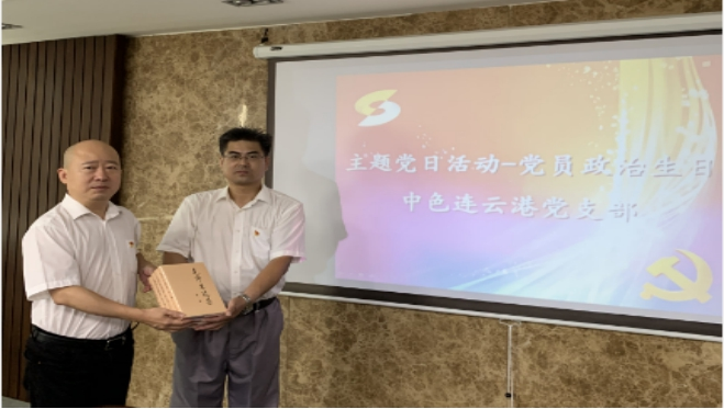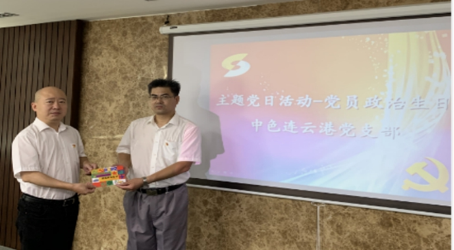 今年是中国共产党建党诞辰101周年,就在党的生日到来之际,为了进一步增强党员的集体荣誉感和历史责任感,激发广大党员同志的工作积极性,发挥党员干部的先锋模范作用,进一步坚定理想信念,践行党的宗旨,2022年07月05日上午,中色连云港党支部组织开展了“过政治生日、忆入党初心”主题党日活动,为7月份光荣加入中国共产党的杨亚华同志庆祝“政治生日”。使党员同志真正感受到了党组织的关怀和温暖,使支部的政治生活更加丰富多彩。