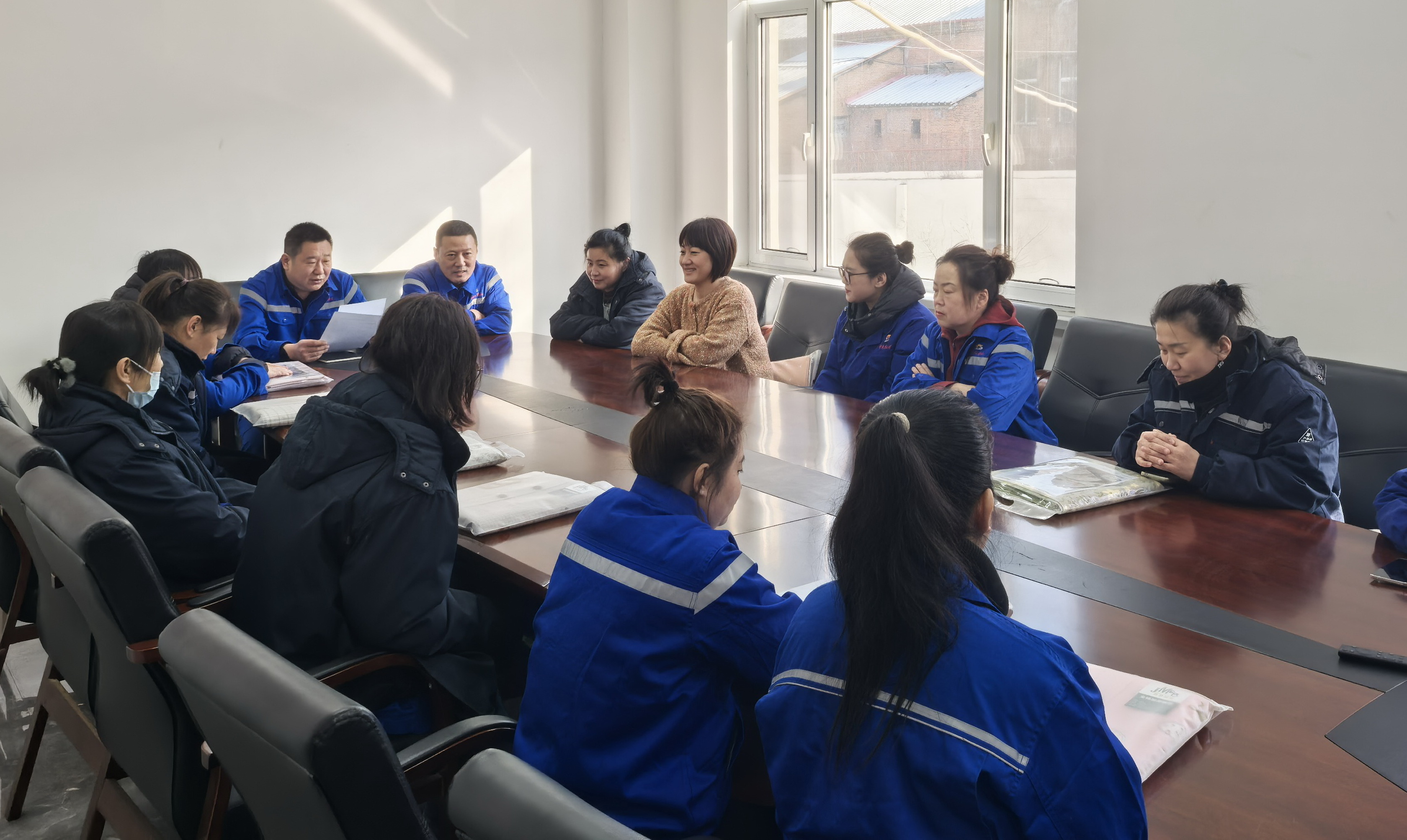 会前,公司工会还组织公司女职工为生产一线捐献了亲手缝制的擦机布。这些擦机布不仅承载着女职工们灵巧双手的温度,更映照出她们扎根一线、默默奉献的质朴情怀。一针一线间,是责任与匠心的无声践行,也是对“巾帼不让须眉”最生动的注解。
