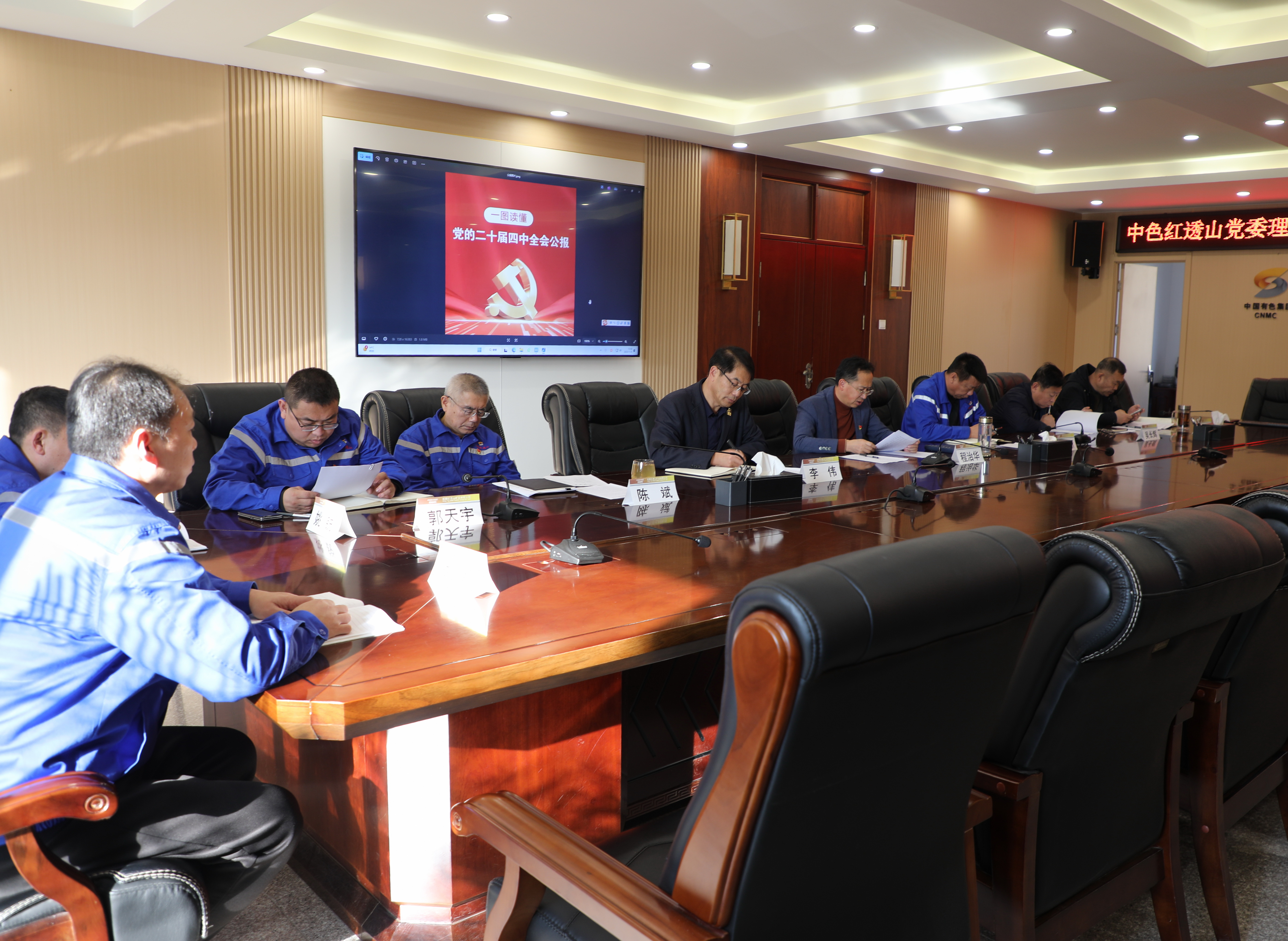 11月6日,中色红透山党委召开理论学习中心组第八期暨深入学习贯彻二十届四中全会精神读书班,专题学习党的二十届四中全会公报及中共中央办公厅、国务院办公厅印发的《整治形式主义为基层减负若干规定》,深入领会习近平总书记在听取西藏、新疆党委和政府工作汇报时的重要讲话精神、在党外人士座谈会上的重要讲话精神,系统学习习近平总书记关于全面深化改革的一系列新思想和关于铸牢中华民族共同体意识的重要论述,重温习近平总书记“11·6”“2·26”重要指示及对集团公司的三次重要批示精神。公司党委书记、董事长程治华主持会议并作总结讲话。