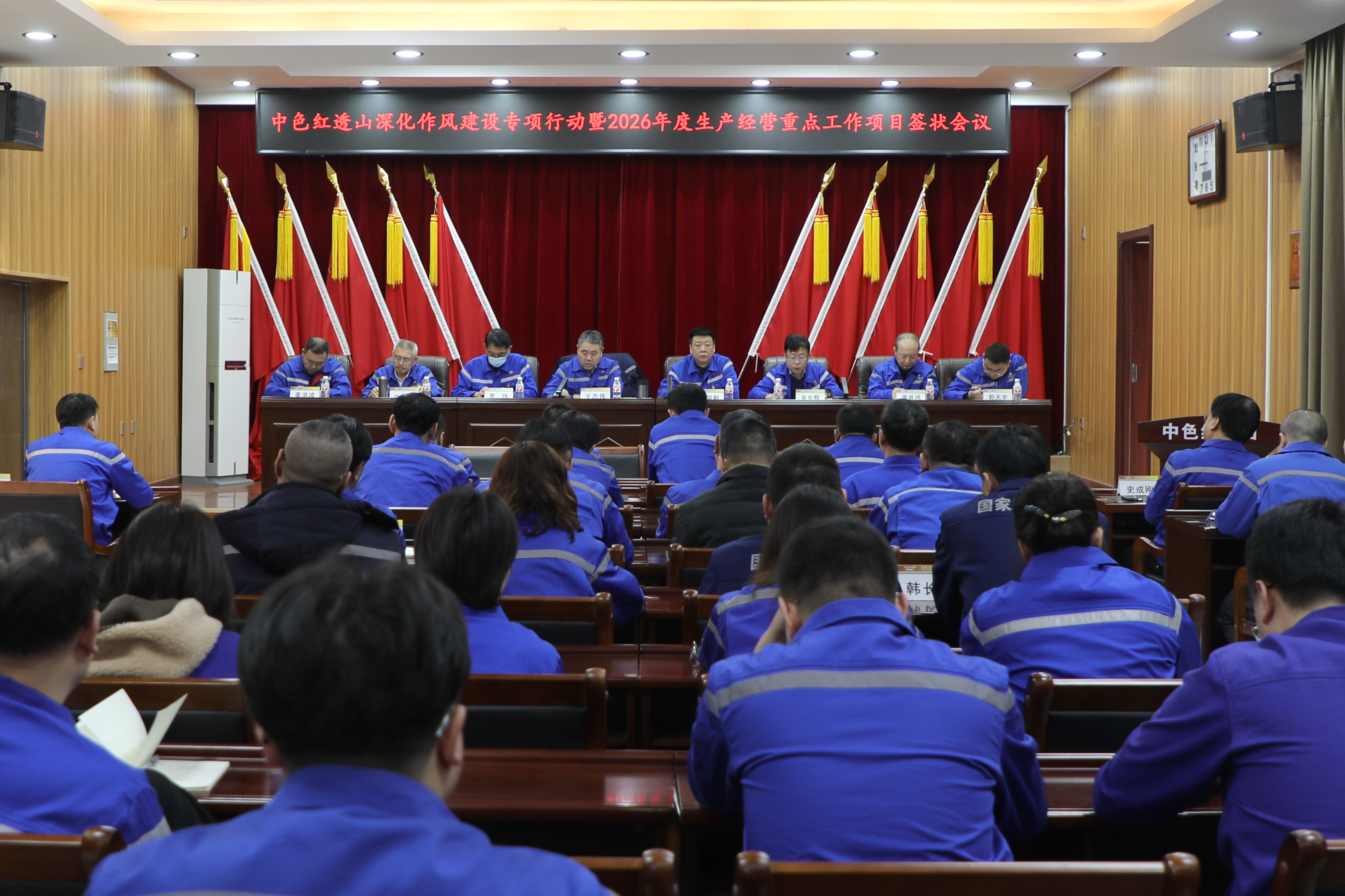 3月10日,中色红透山召开深化作风建设专项行动暨2026年度生产经营重点工作项目签状会议。会议深入贯彻落实集团公司及公司年度工作会议精神,将八项生产经营重点工作目标层层分解、责任到人,推动作风建设走深走实,为公司高质量发展提供坚强保障。公司总会计师吴长辉主持会议。公司全体领导班子成员,各直属单位党政正职、机关部室主任及相关项目负责人、专业技术人员参加会议。