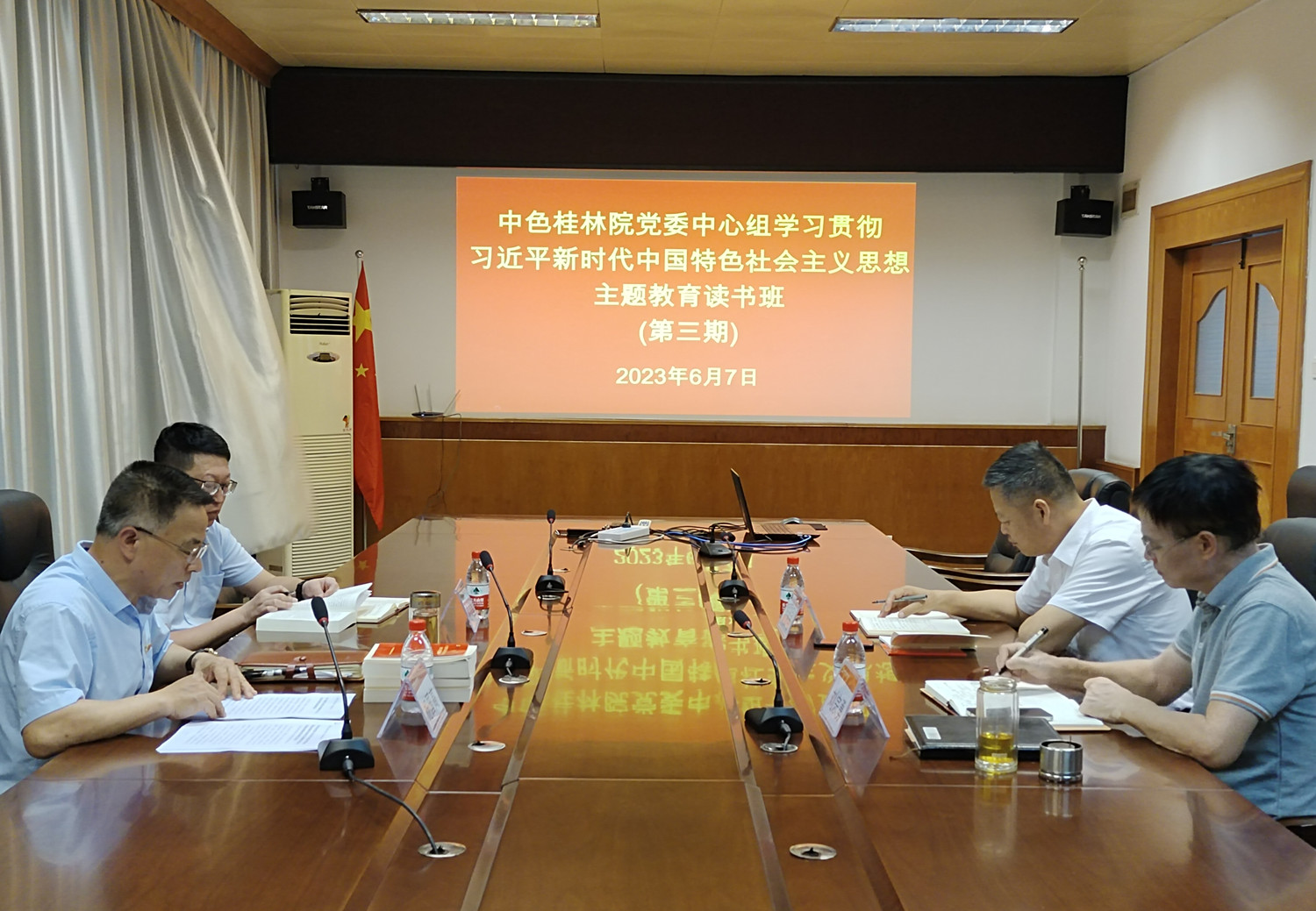 6月7日,中色桂林院党委举办理论学习中心组学习贯彻习近平新时代中国特色社会主义思想主题教育第三期读书班,闭门集中学习《习近平新时代中国特色社会主义思想的世界观和方法论专题摘编》《习近平关于调查研究论述摘编》以及习近平总书记有关重要讲话精神。中色桂林院党委副书记、主题教育领导小组组长杨国高主持读书班,并围绕《聚焦集团主责主业 重振桂林院科研雄风》作中心发言,公司领导班子成员,职能部门和相关业务单位负责人参加读书班集中学习和研讨。