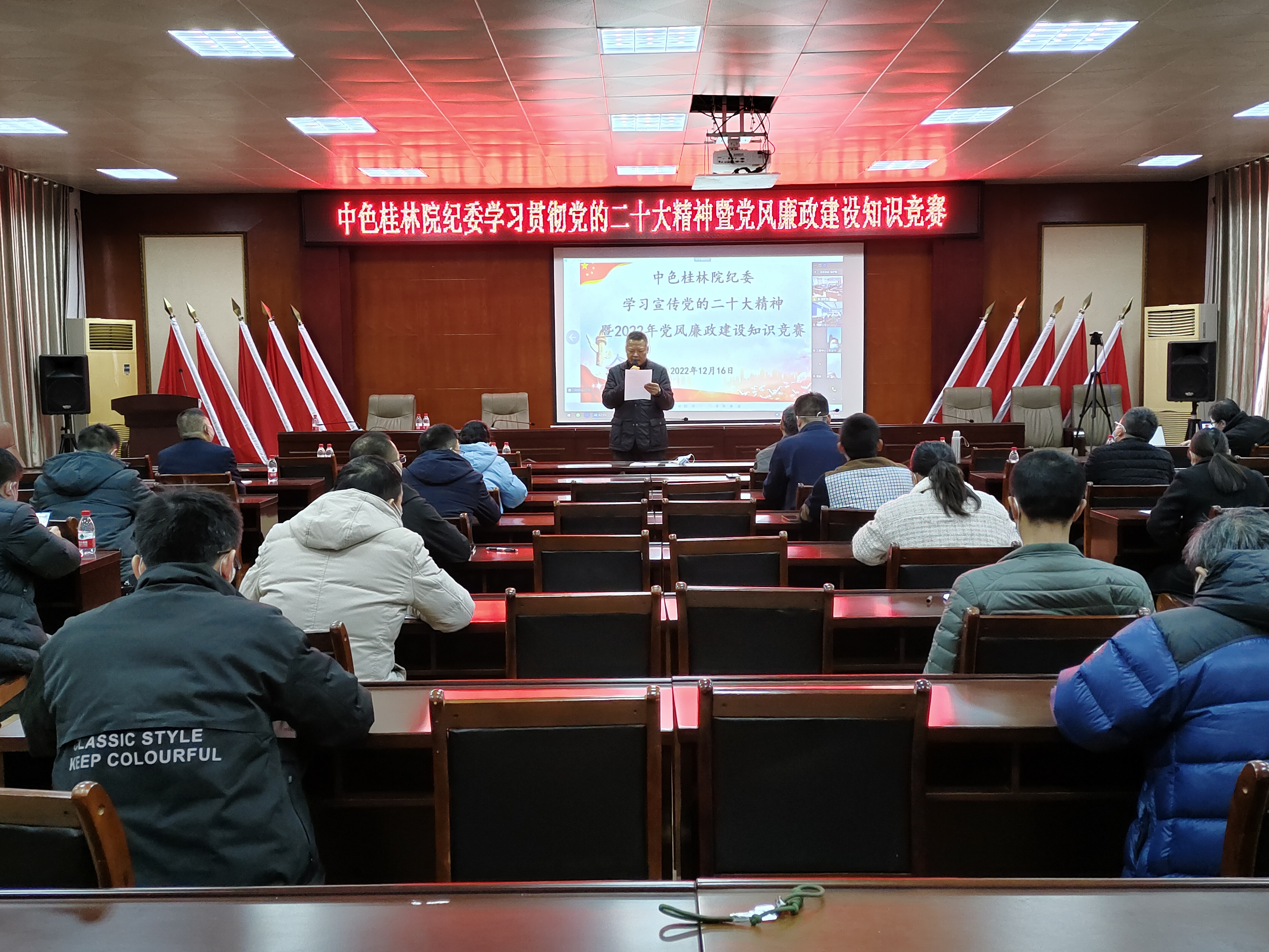 12月16日,中色桂林院纪委组织开展学习贯彻党的二十大精神暨党风廉政建设知识竞赛活动,纪委书记高贤明主持竞赛活动。公司纪委委员、党风廉政建设与反腐败协调小组成员、各党支部书记、支委委员和党风廉政监督员参加竞赛活动。竞赛活动以现场+视频的方式组织。