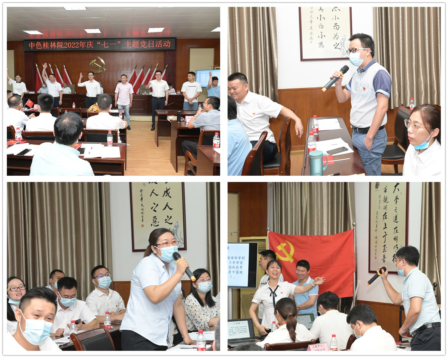 7月1日上午,中色桂林院以“不忘初心勇担当 建功立业二十大”为主题,开展庆“七一”党日活动。活动现场举行了新党员宣誓仪式,为“七一”前后入党的10位党员过了集体政治生日,一起聆听3位老党员讲述的初心故事,并开展了党史常识与时事政治抢答。