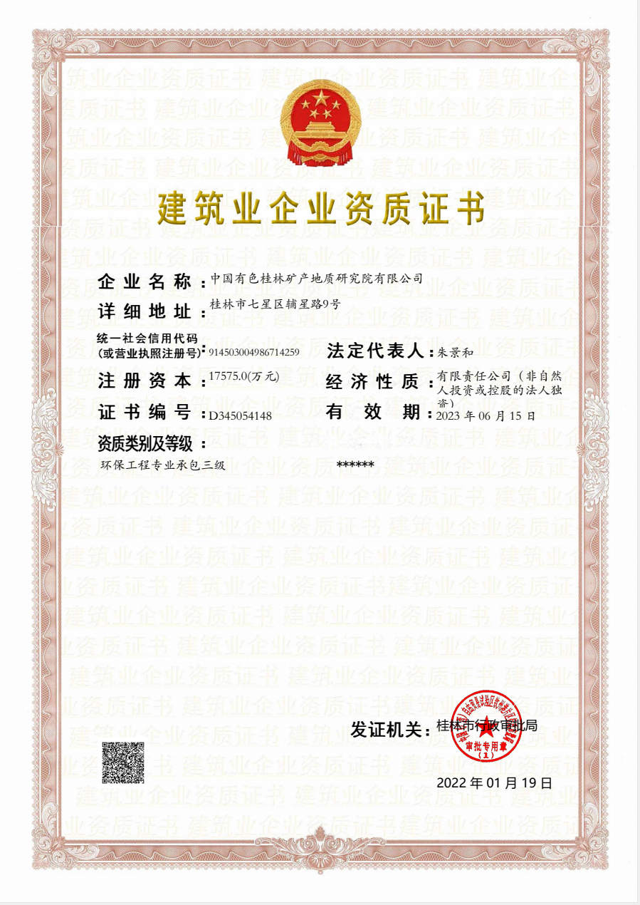 | 2019.11.29-2022.11.28 | 广西壮族自治区住房和城乡建设厅 | 工程 公司 | 桂林矿产地质研究院工程有限公司 |