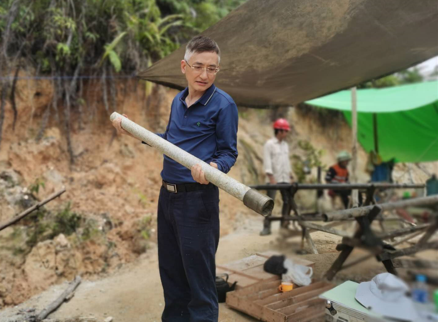 4月9日,朱景和董事长一行驱车5小时前往印尼金山金矿项目对项目组成员进行了慰问,仔细询问了解钻探进度、见矿成果、安全生产等情况,并与项目技术人员亲切交流,与业主方就矿山下一步勘查、合作进行了深入探讨。