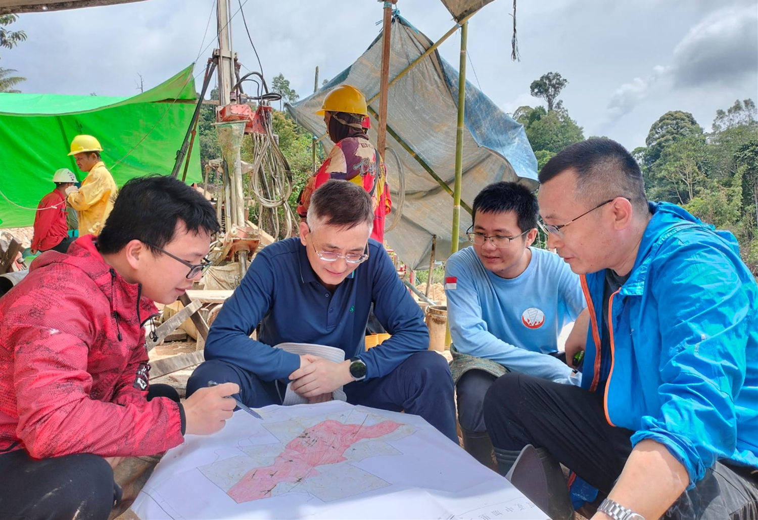 为进一步加快公司海外地质业务发展,4月6日至9日,中国有色桂林矿产地质研究院有限公司(简称:中色桂林院党委书记、董事长朱景和一行赴印尼晟源地勘公司开展工作调研,中色桂林院地质事业部总经理赵延朋、印尼晟源地勘公司总经理卢见昆陪同调研并参加有关活动。