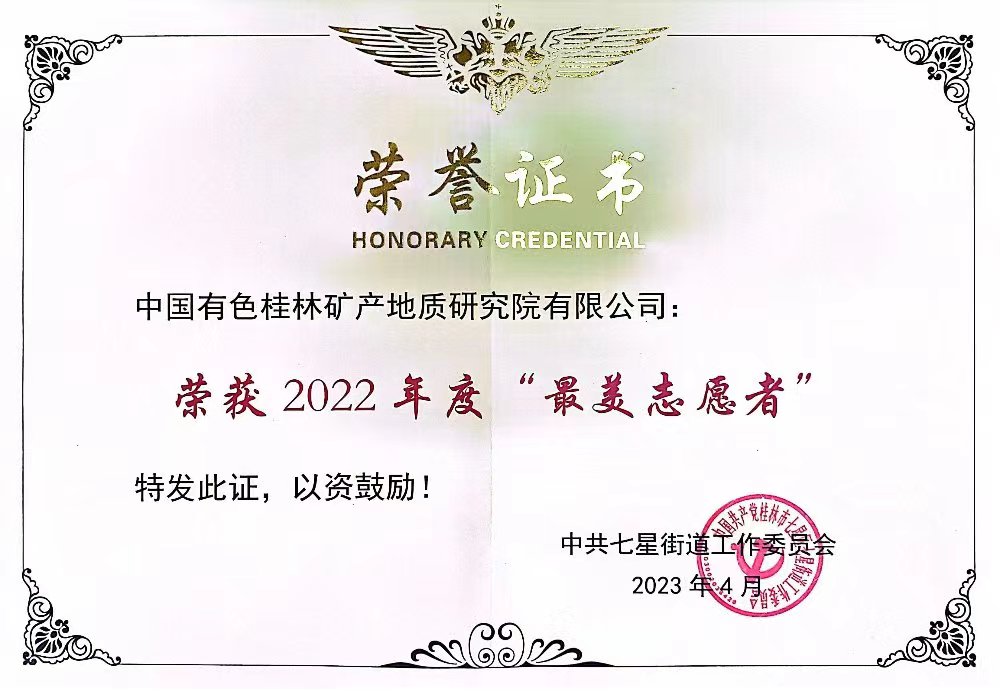 2022年,中色桂林院志愿服务队先后派出100余人次,积极参与社区疫情防控、创城创卫活动、学雷锋活动、文明交通劝导、协助社区内小区物业招标、“爱护母亲河”漓江边清洁活动、植树活动等志愿服务;志愿服务队还积极组织开展科普进校园活动2次,特邀地质学、环境学专家教授分别到龙隐小学、育才小学开展矿产资源科普、环境保护科普讲座,受众小学生500余人,相关情况在桂林文明网报道,桂林日报小记者报采用图片形式对活动进行了报道,取得良好的社会效益。