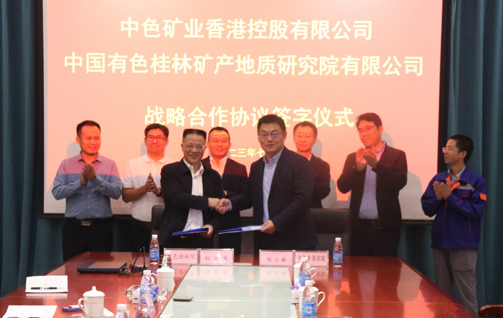 7月26日,中色桂林院和中色矿业香港控股有限公司(以下简称香港控股)就资源勘查开发领域的深入合作签署了战略合作协议。杨国高、香港控股董事长陈志敏代表双方签字。此次战略合作协议的成功签署,为中色桂林院深入践行“一带一路”理念、保障国家资源安全注入了源头活水,更为合作双方优势互补、协同发展、互利共赢起到了积极地推动作用。中色桂林院将聚焦“两个主力军”战略定位,充分发挥地质人才优势,促进在科技创新、地质勘查技术服务、矿业开发等方面开展合作,实现互利共赢。