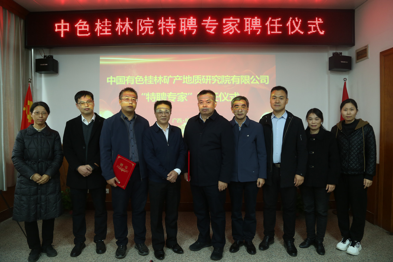 活动期间,中色桂林院先后举行了特聘专家聘任仪式和“聚焦量子,抢占新赛道”八桂之约•院士专家冬令营研讨会。在特聘专家聘任仪式现场,杨国高先后为胡章贵教授和于浩海教授颁发聘书,胡乔帆主持聘任仪式,于浩海教授作题为《几种量子材料的光电响应及频率变换研究》的特邀报告。