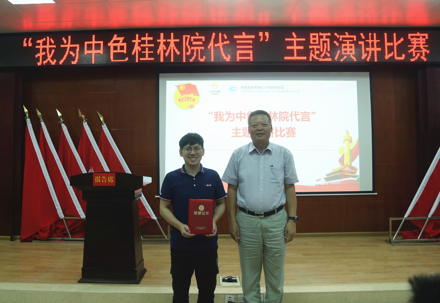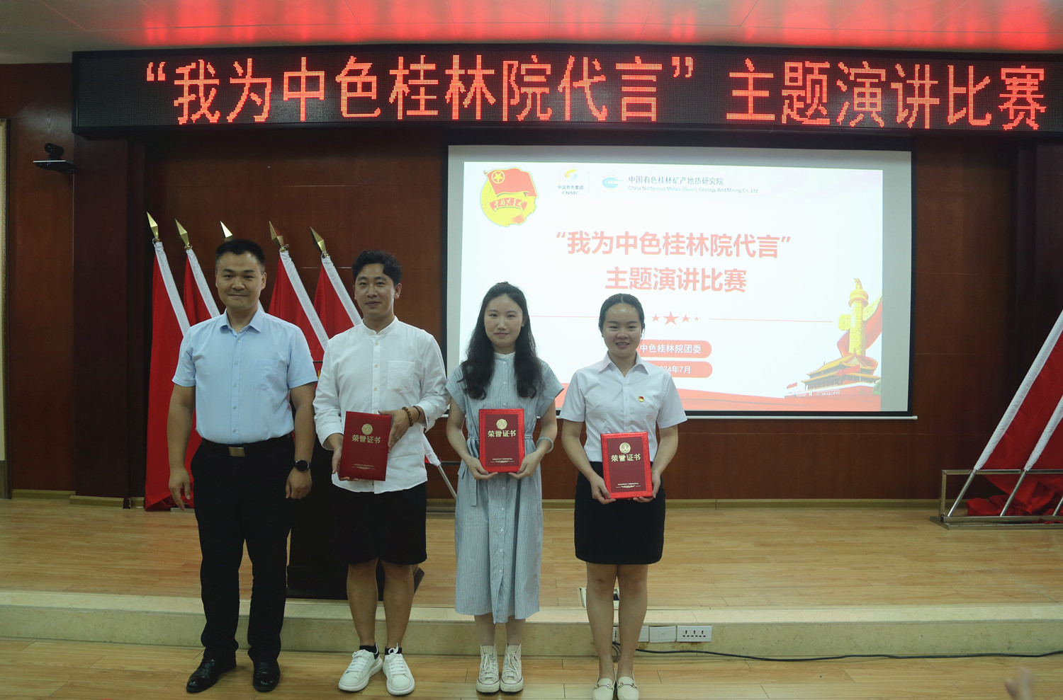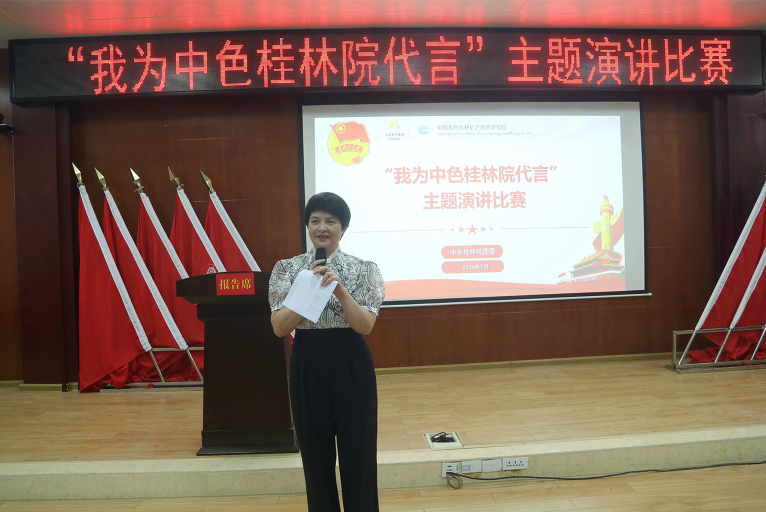 7月9日,中色桂林院团委举办“我为中色桂林院代言”主题演讲比赛。中色桂林院党委书记、董事长、总经理杨国高出席比赛现场并讲话,中色桂林院在桂领导班子成员莅临现场。本次比赛特邀桂林广播电视台资深播音员梁新华老师担任评委并作现场指导。