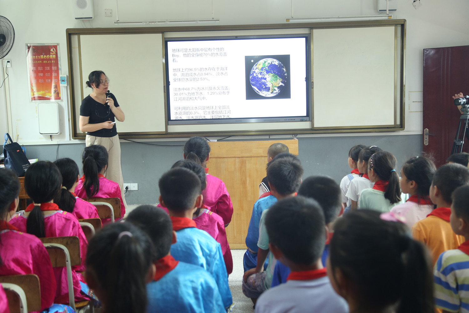 张静教授以《水的故事》为主题,从水的起源为切入点,讲述了水的污染、水的净化、水的危机及措施、南水北调工程、节约用水、安全用水等相关知识。张教授通过科学严谨的态度、生动有趣的讲述、色彩鲜明的照片、新奇有趣的视频,让学生们大开眼界,带领他们一起探索科学知识,感受科学奥秘。