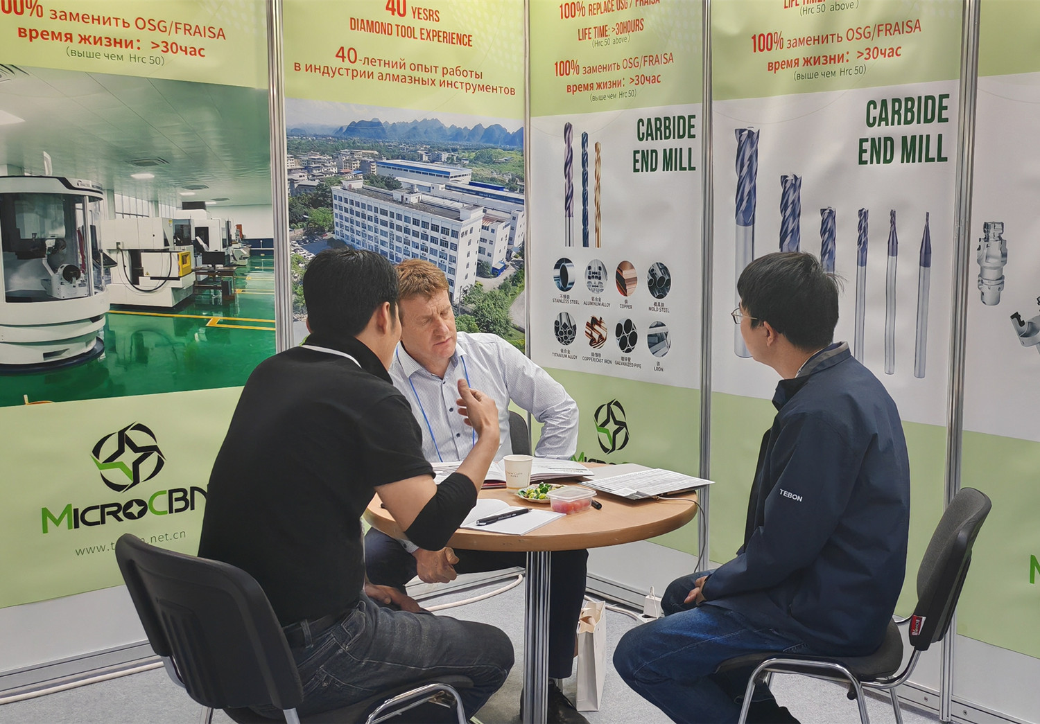 在展会上,特邦公司展示了最新的PCD/PCBN标准、非标刀具及其他系列新刀具产品等。凭借卓越的性能和可靠的品质成功吸引许多参观者驻足了解产品性能和应用场景,表示出浓厚的合作兴趣,并与现场技术人员进行了深入的交流和洽谈,探讨了未来的合作可能性。这些潜在的合作机会,为特邦公司开拓更广阔的国际市场奠定坚实基础。此外,特邦公司还利用展会这一平台,与俄罗斯当地的金属加工企业进行了深入对接和交流,充分地了解了当地市场的需求和特点。