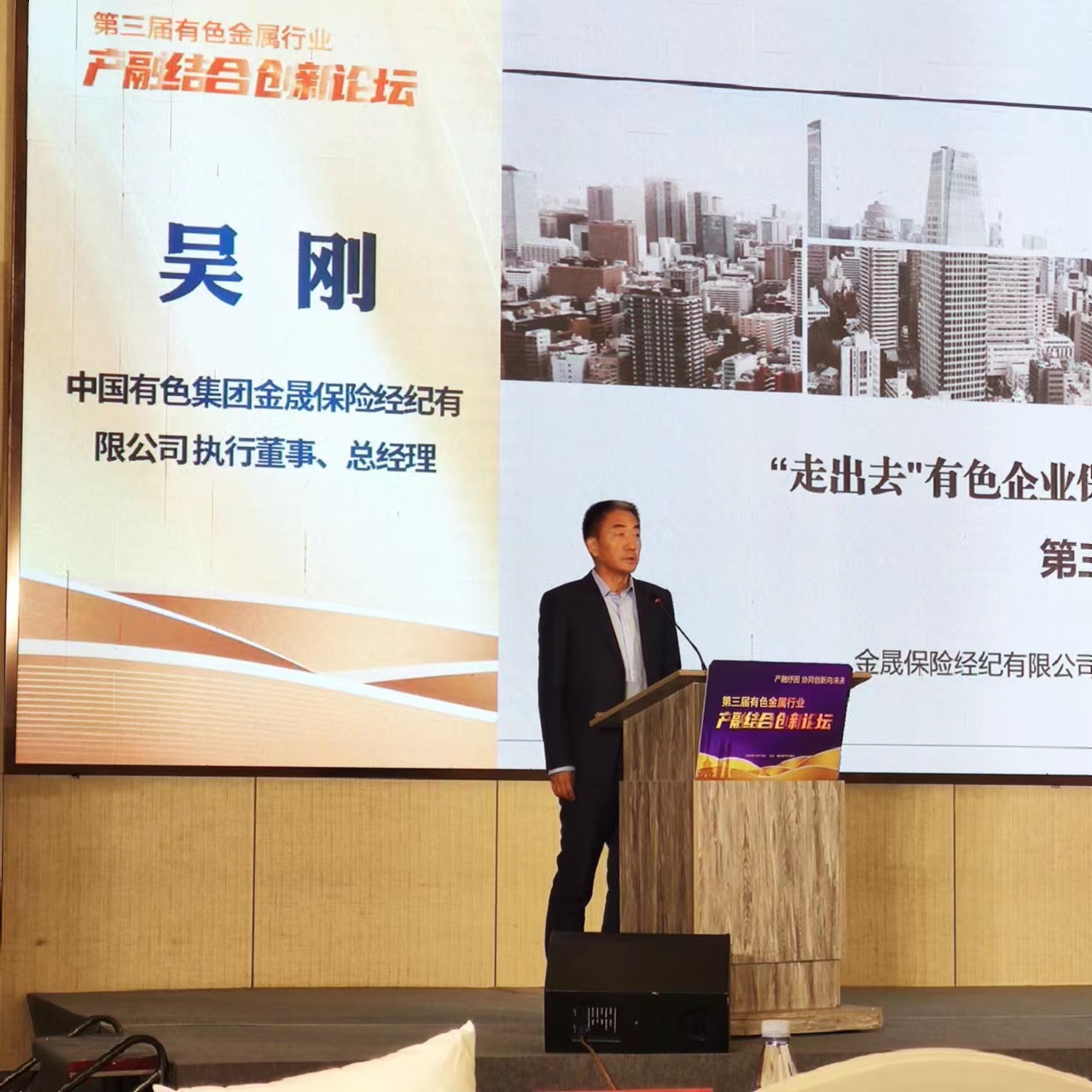 金晟保险经纪有限公司(以下简称中色金晟或公司)作为唯一一家受邀参加创新论坛的保险经纪公司,立足有色、服务社会,深入贯彻落实习近平总书记关于金融领域重要讲话精神、产融结合若干部署。会上,执行董事、总经理吴刚发表《“走出去"有色企业保险指南》,对“走出去”有色企业的“一揽子”金晟服务方案进行介绍。作为有色集团金融板块独资企业,在集团公司大发展背景下,中色金晟充分发挥建立健全商业保险风险转移机制的重要作用,已实现为有色集团和多家行业大型企业提供员工、财产、货运、责任、政治暴力保险等“一揽子”保险经纪服务。