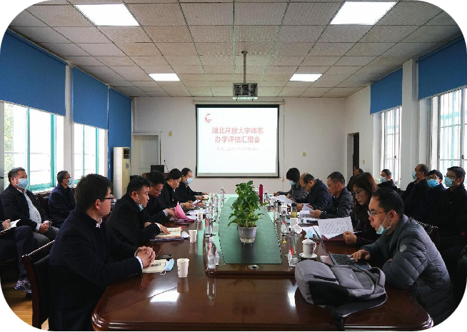 2022年3月24日下午,湖北开放大学评估专家组一行五人,在组长缪富民组长的带领下,到湖北开放大学开展办学水平综合评估工作。