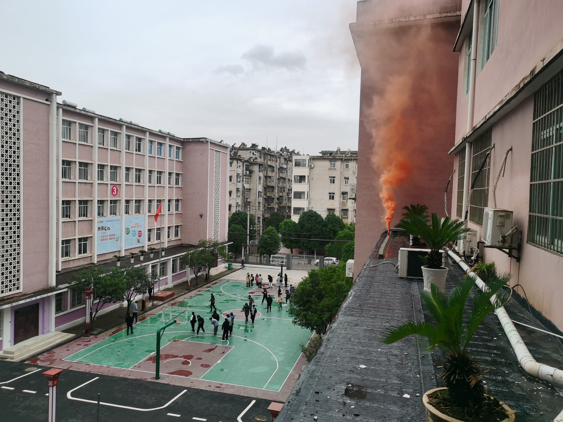 11月30日下午3时26分,随着火情警报的拉响,大家分工协作,灭火组迅速抵达火情地点查看,正确处置火情并视具体情况模拟启动消防联动机制。学生组组织全体学生,听从老师指挥,在楼道弯下身体,手捂口鼻,小步快跑模拟逃生疏散,按预案规定线路有序撤出教学楼,到达指定的篮球场疏散集结地。管理组有序组织职工按逃生路线紧急疏散到安全地带,由专人负责清点人数,做到不漏一人。随着最后一名教师的撤出,演练时间记录人员通报了此次消防应急疏散演练用时,全程耗时2分14秒,创职教中心有史以来消防疏散演练速度新高。