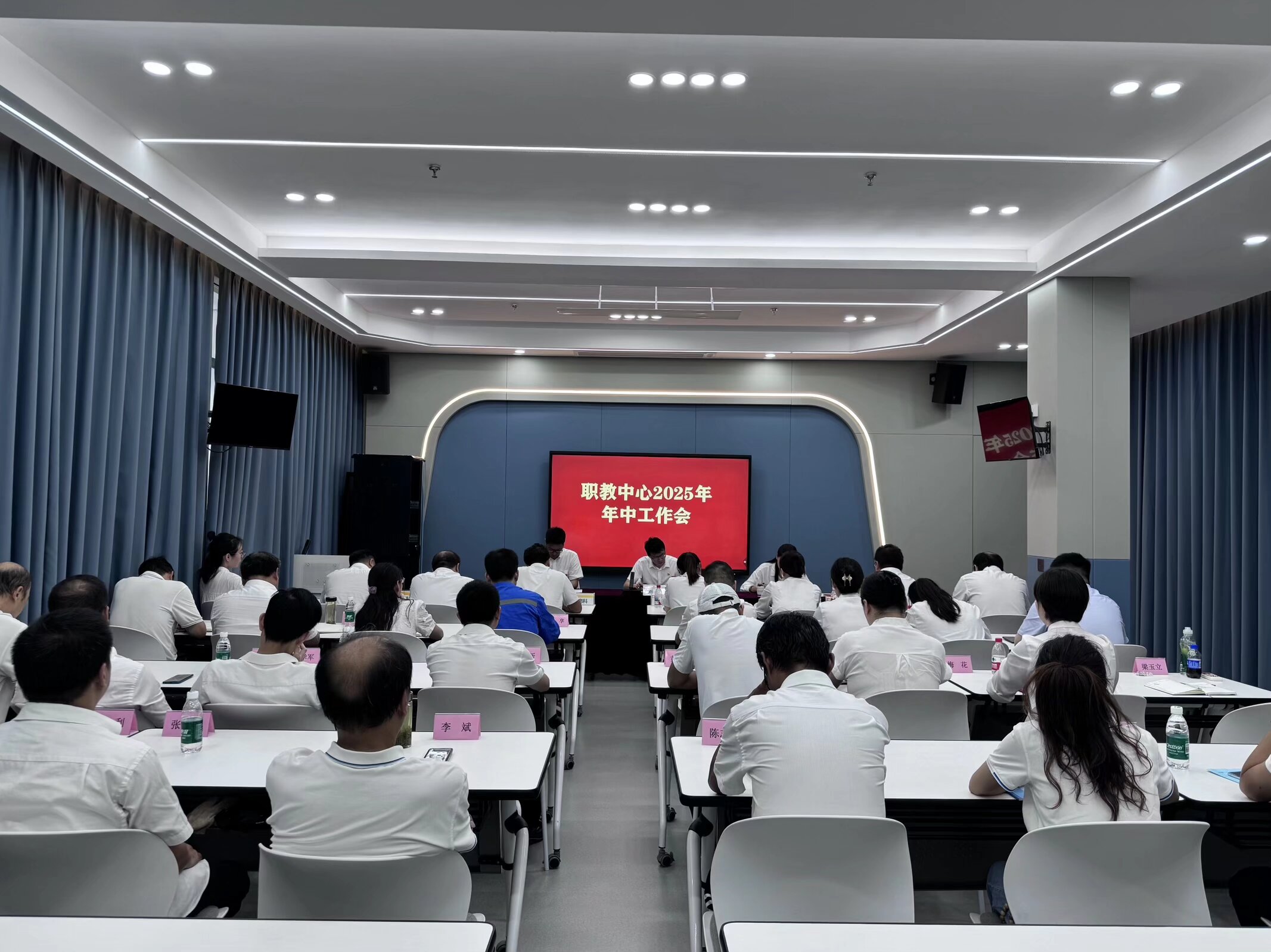 2025年8月5日上午,职教中心召开2025年年中工作会暨巡察整改推进会,深入学习贯彻集团公司年中工作会议精神,全面总结上半年工作成效,系统部署下半年重点任务,以巡察整改为契机,推动中心迈入高质量发展新征程。中心班子成员及全体教职工参加会议。