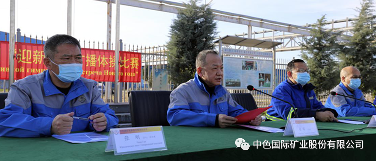 2021年12月31日,雪后初晴,阳光明媚,经过一个多月的紧张训练,一场中塔员工共同参与的广播体操比赛闪亮登场。体操比赛由中色国矿副总经理、工会主席李继业主持。入场式在雄壮的运动员进行曲中上演,接着举行了庄严的升旗仪式,鲜艳的五星红旗和塔吉克国旗先后在初升的阳光中冉冉升起。中色国矿总经理张辉发表了热情洋溢的《2022年新年贺词》,张辉总在贺词中总结了公司2021年的工作成绩,向长期坚守在塔吉克这片创业热土的广大中塔员工,以及关心、支持公司改革发展的中外各界人士,致以新年的祝福!憧憬了美好的2022年,他指出我们已走过千山万水,但仍需不断奋进跋涉。2022年,我们要进一步强化新担当、要进一步迸发新动力、要进一步展示新作为,以奋斗者姿态挥洒汗水,描绘更加美好未来。