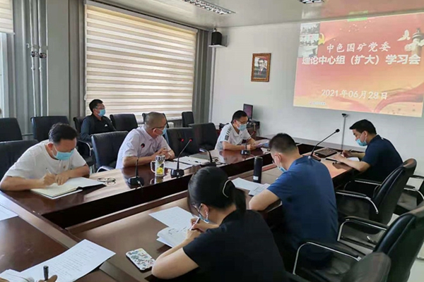 2021年6月28日,中色国际矿业股份有限公司在塔吉克帕鲁特现场举行首次理论中心组学习(扩大)会暨党史学习教育推进会。公司党委书记余利先主持了学习讨论。