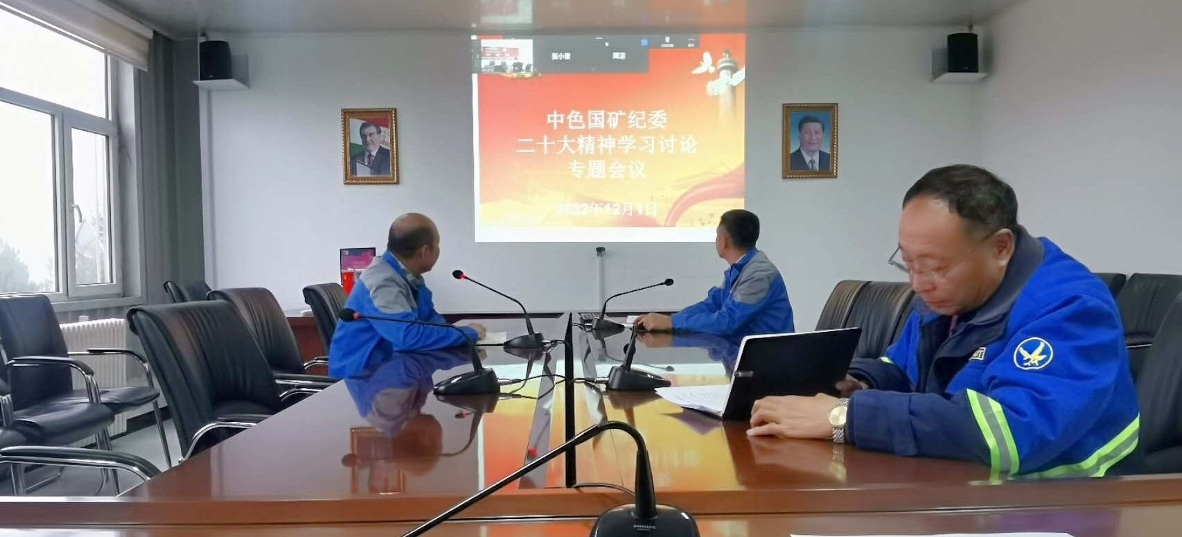 2022年12月2日,中色国矿纪委召开二十大精神学习交流研讨会议,专题学习宣传党的二十大会议精神,中色国矿纪委书记王杜平主持会议,并宣讲党的二十大精神。