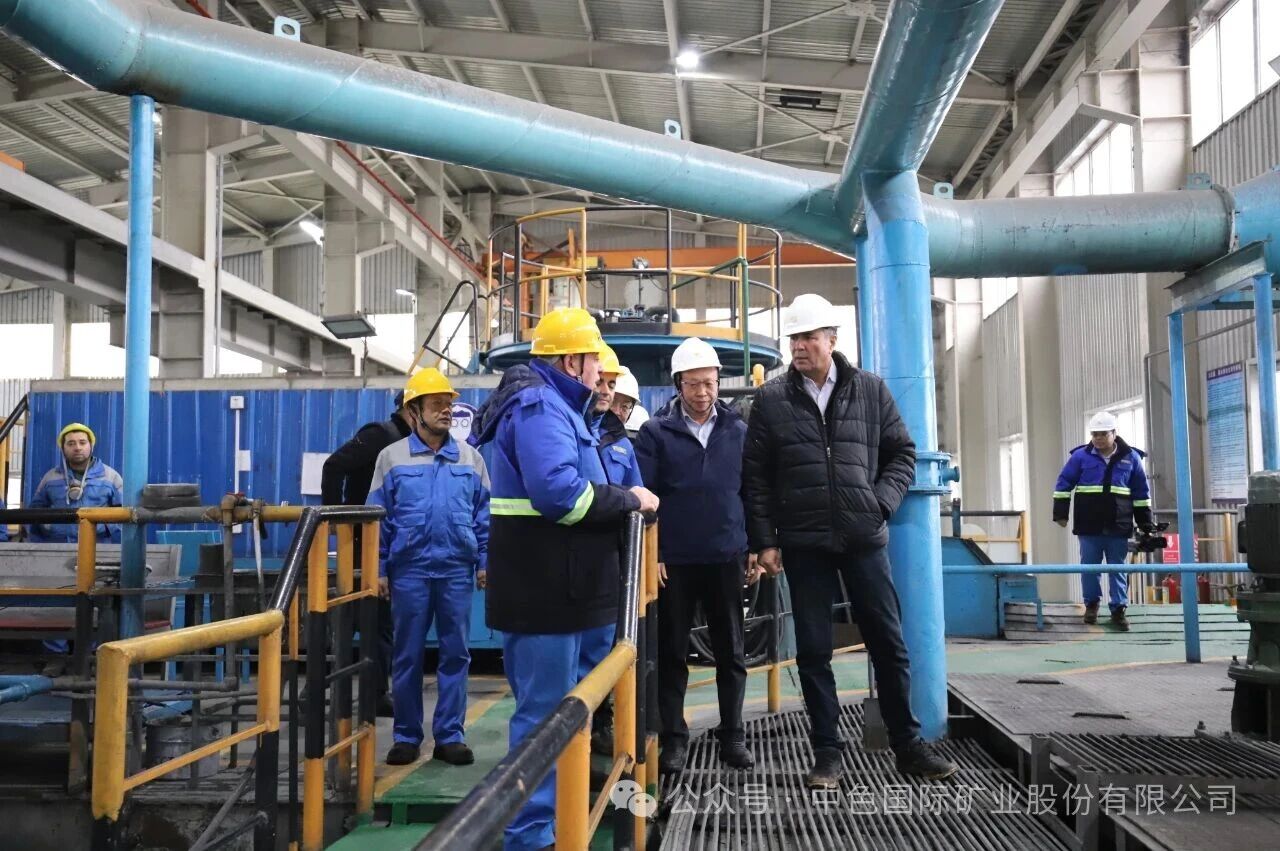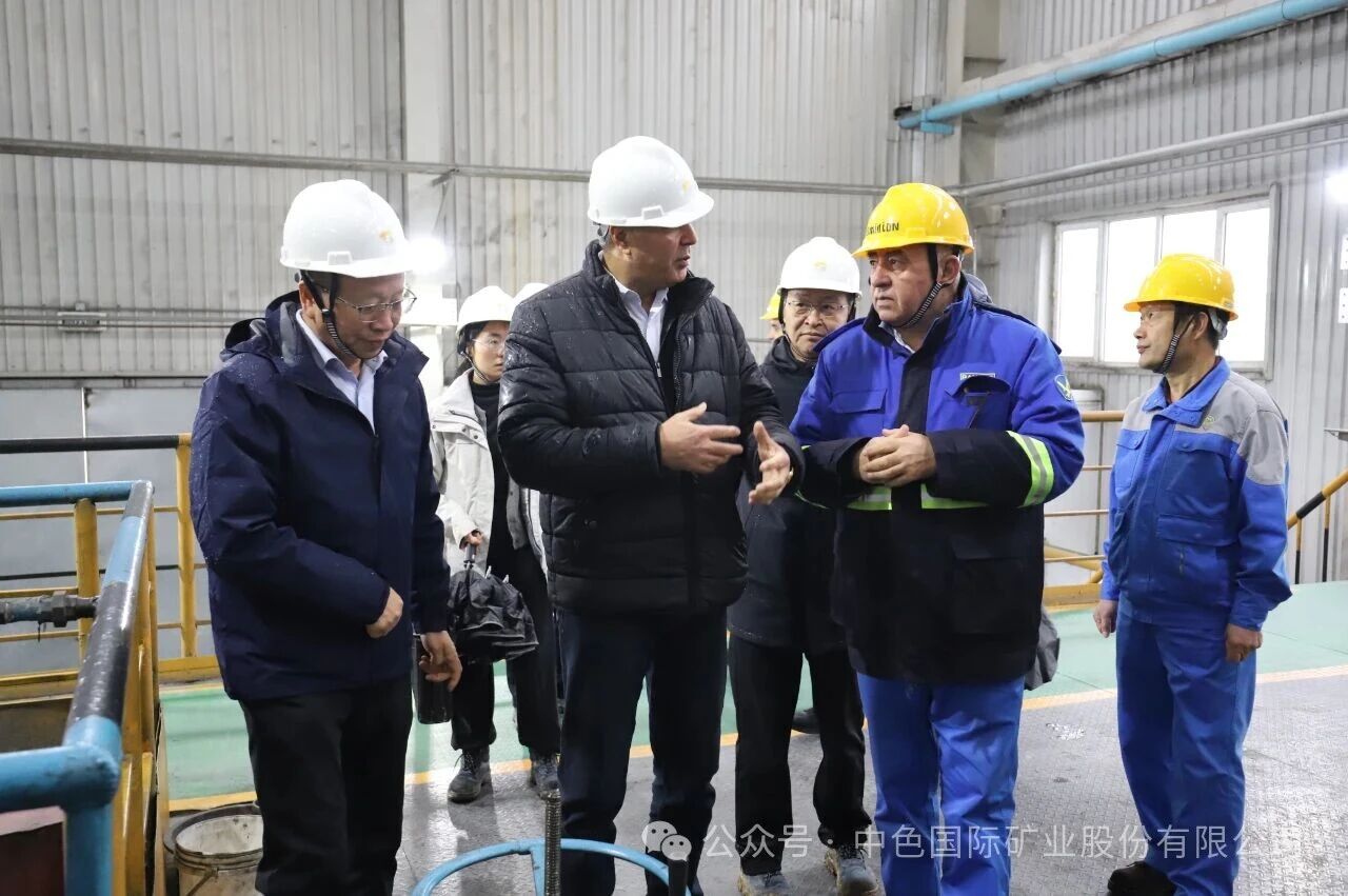 植树活动结束后,郭志军大使和纳斯鲁洛·马赫穆佐达主席等一行专程前往中色国矿帕鲁特公司冶炼厂进行座谈交流。中色国矿董事长徐宗西详细汇报了公司在安全生产、科技攻关、资源保障、精细化管理以及履行社会责任等方面的工作进展与未来规划。双方围绕深化中塔矿业合作、推广绿色低碳技术、促进当地经济社会可持续发展等议题进行了深入务实的交流探讨。