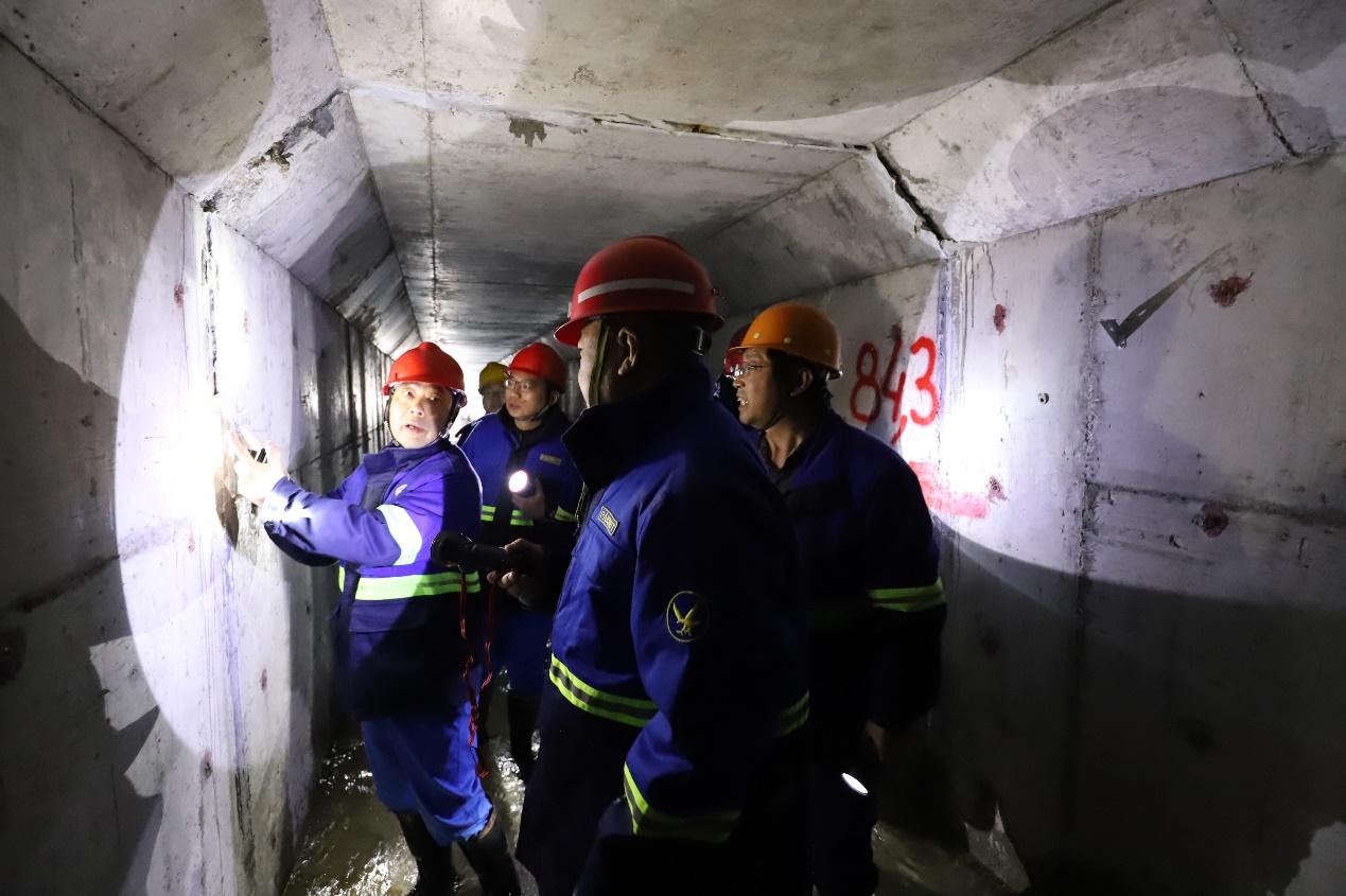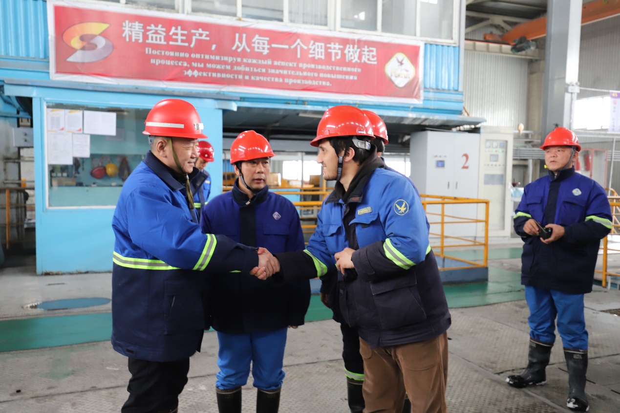 张辉董事长一行先后深入到帕鲁特采矿厂井下供矿采场、残矿采场、水泵房、中央变电所、地表充填站,选矿厂磨浮车间、压滤车间、矿区尾矿库引水涵洞、冶炼厂氰化尾矿库等地点,就生产组织、设备管理、“6S”现场管理、安全隐患治理、雪崩受损厂房清理等工作开展情况进行了现场检查,并认真听取了帕鲁特公司安全生产、科技创新、资源增储、重点工程等方面情况介绍。检查过程中,张辉还与一线中塔两国员工亲切交流,倾听他们的心声,了解他们的工作和生活状况,对帕鲁特公司取得的经营业绩和干部员工展现出的昂扬向上的精神风貌、攻坚克难的实干劲头给予充分肯定,并代表中色国矿领导班子向大家表示亲切慰问。