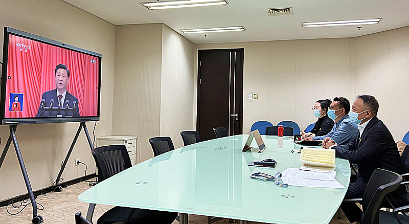 2022年10月16日上午10时,中国共产党第二十次全国代表大会隆重召开,习近平总书记代表十九届中央委员会向大会作报告。中色国矿党委结合公司实际,利用视频方式,组织党员干部分别在北京本部中国有色大厦717室、塔吉克帕鲁特公司冶炼厂区会议室、帕鲁特矿区党建活动室三个会场,同时集中收看中国共产党第二十次全国代表大会开幕会实况,认真聆听学习习近平总书记在中国共产党第二十次全国代表大会上的报告。